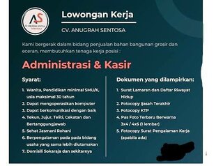 Setelah persyaratan terpenuhi diharapkan proses pemilihan selanjutnya. Jadi jika anda berminat dan memenuhi persyaratan CV. Anugrah Sentosa Sokaraja, Silakan kirimkan lamaran Anda sebelum ditutup.