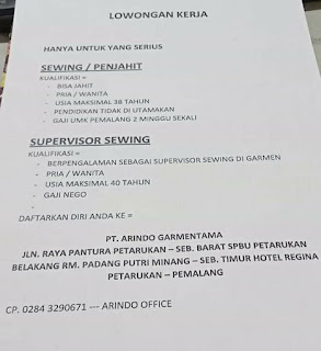 Untuk kesempatan kali ini saya ingin memberikan info paling baru Lowongan Kerja PT. Arindo Garmentama di Pemalang. Berikut ini adalah kualifikasi berikut ini: