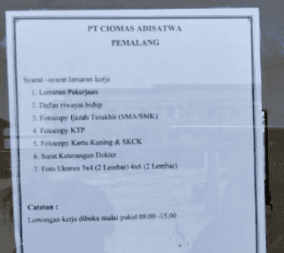 Lowongan Kerja PT. Ciomas Adisatwa Pemalang 2021