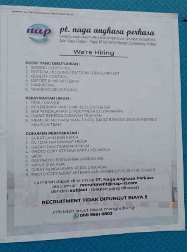 Lowongan Kerja PT. Naga Angkasa Perkasa Brebes